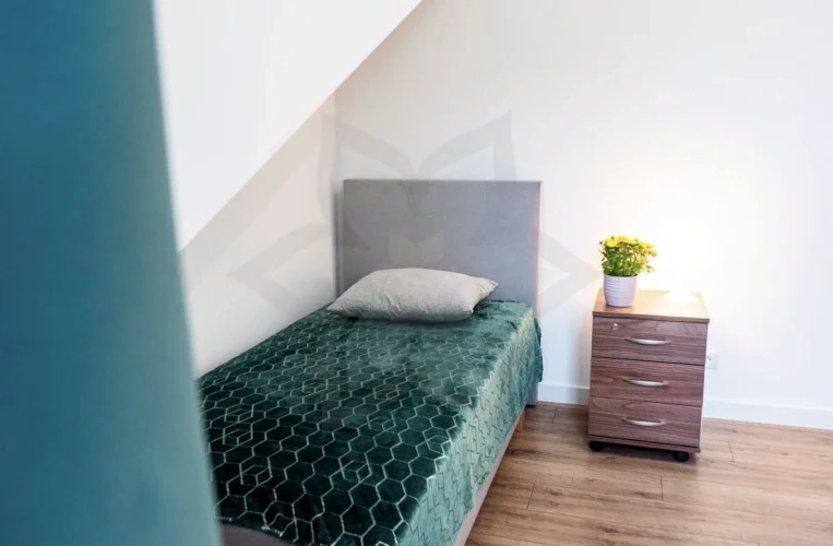 • Одноместная комната с кроватью, шкафом, тумбочкой, иногда ТВ