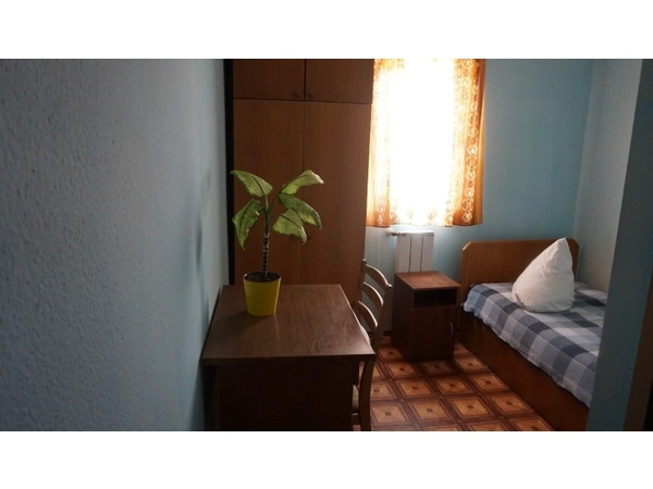 • Одноместная комната с кроватью, шкафом, тумбочкой, иногда ТВ