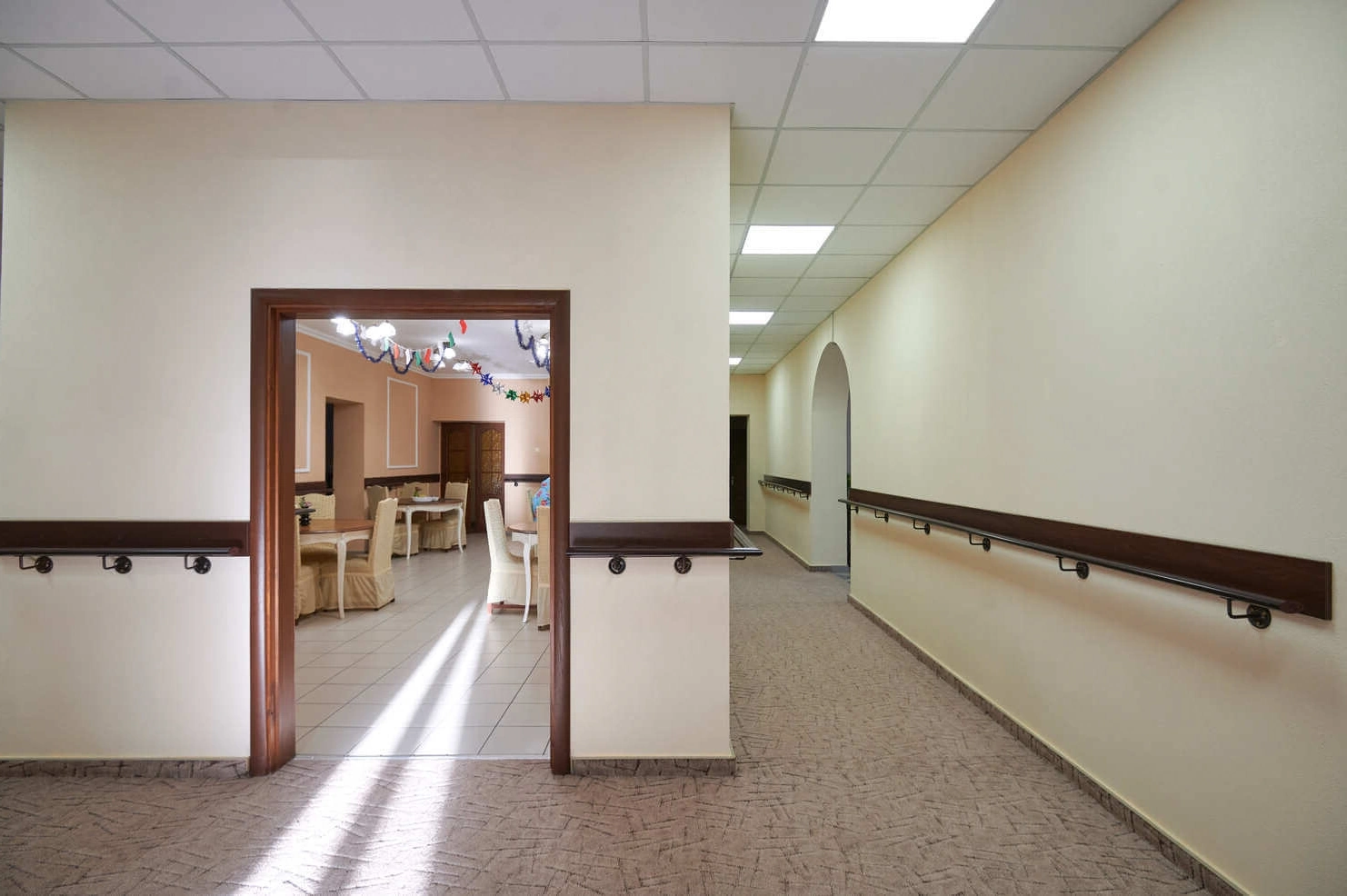 Дом инвалидов «Северное Сияние» на севере Москвы известен качественным медицинским уходом и продуманным питанием. Врачи и медсёстры контролируют давление, уровень сахара, пульс, температуру и дыхание, что помогает поддерживать стабильное состояние здоровья. Благодаря постоянному наблюдению вызовы скорой здесь крайне редки — не чаще одного раза в полгода. Сиделки ежедневно помогают в гигиене, кормлении, одевании и сопровождении, создавая для пожилых людей ощущение безопасности и уюта. Рацион организован пять раз в день: на завтрак подают каши и омлеты, на обед — супы, мясные или рыбные блюда с овощами, ужины включают лёгкие гарниры, кисломолочные продукты и домашнюю выпечку. Меню разнообразное и всегда составляется с учётом медицинских показаний и предпочтений жителей. Дом инвалидов «Северное Сияние» на севере Москвы располагается в современном здании с просторными комнатами и ухоженной территорией. Для досуга предлагаются чтение книг, настольные игры, гимнастика и прогулки по аллеям. Атмосфера здесь тёплая и дружелюбная, способствующая полноценной жизни и общению.