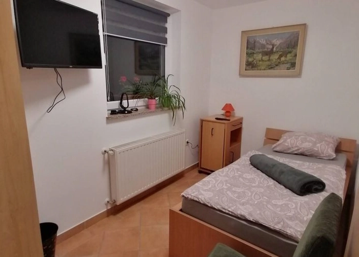 • Одноместная комната с кроватью, шкафом, тумбочкой, иногда ТВ