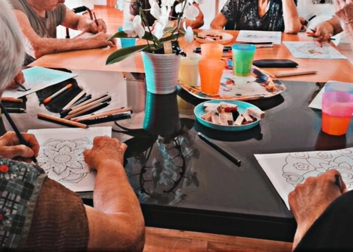 Психолог или аниматор проводит групповые занятия: обсуждение новостей, разгадывание кроссвордов, чтение, настольные игры или простые творческие мастер-классы для поддержания моторики и памяти.
