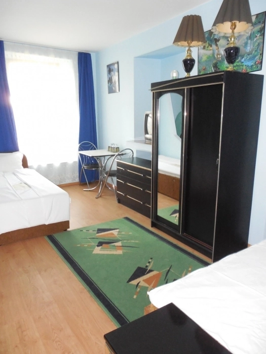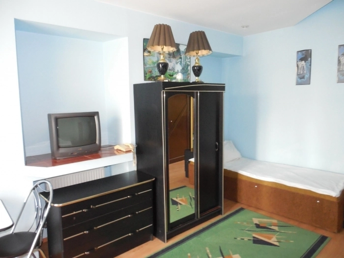 • Одноместная комната с кроватью, шкафом, тумбочкой, иногда ТВ