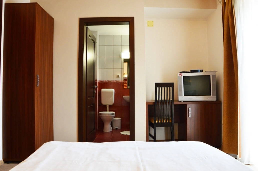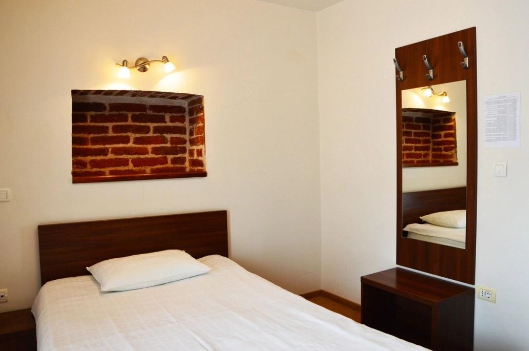 • Одноместная комната с кроватью, шкафом, тумбочкой, иногда ТВ