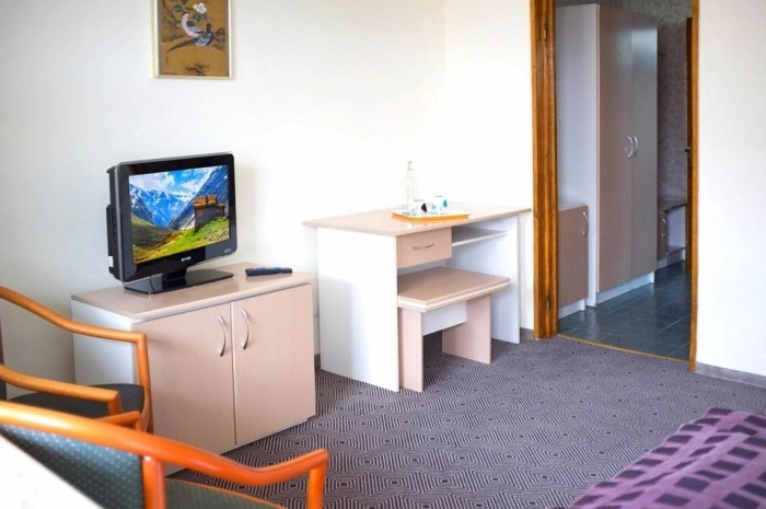 • Одноместная комната с кроватью, шкафом, тумбочкой, иногда ТВ