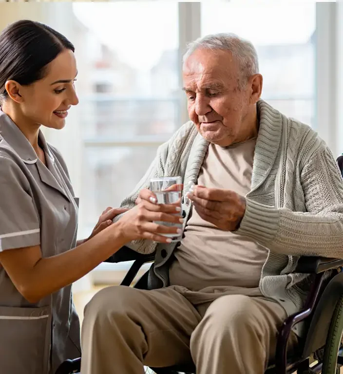 Питание составляется врачом-диетологом с учётом заболеваний, аллергий и предпочтений пациента. Сиделка помогает при кормлении, контролирует аппетит и пищевое поведение, фиксирует изменения и сообщает повару и врачу. Это обеспечивает полноценное и безопасное питание для восстановления и поддержания здоровья.